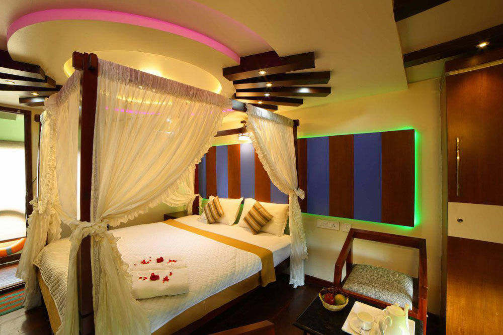 Smart 6-bedroom Luxury houseboat | 200 pax conference hall | Fully glass-covered houseboat | Small bar counter area | Heavy Sound system | LED screen | Suitable for Mice, weddings, Any product launch, etc…