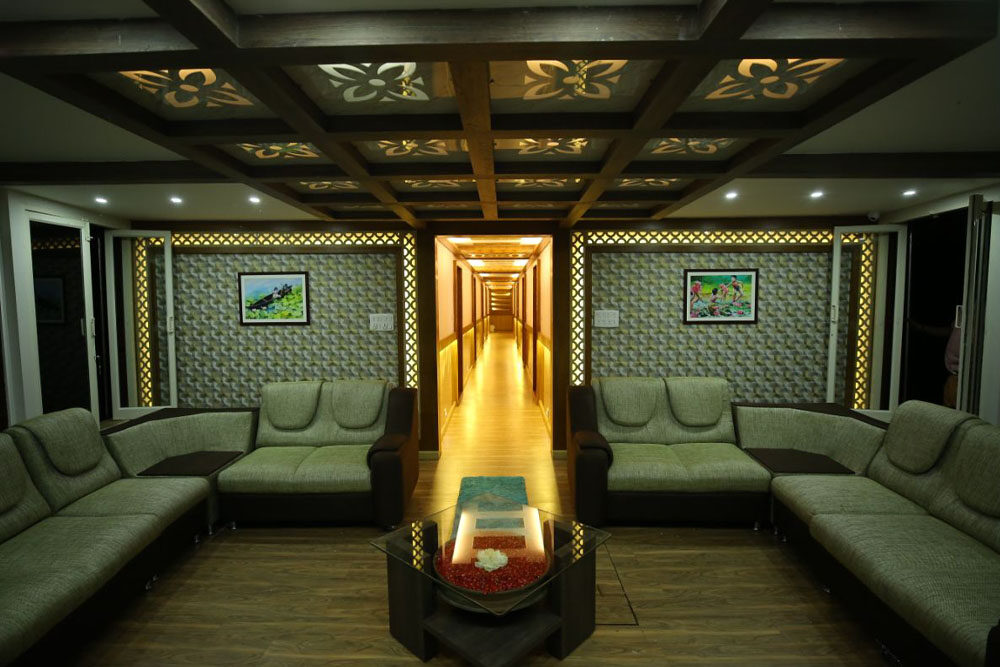 11 bedroom Luxury houseboat in Alappuzha and 500 pax conference hall | Fully glass-covered houseboat | Projector Mike LED screening all facilities | Heavy Sound system | Mainly used for big family get-togethers, weddings, baptisms, mice, Any product launch, etc…